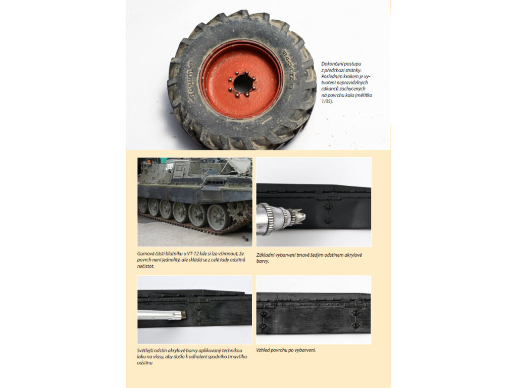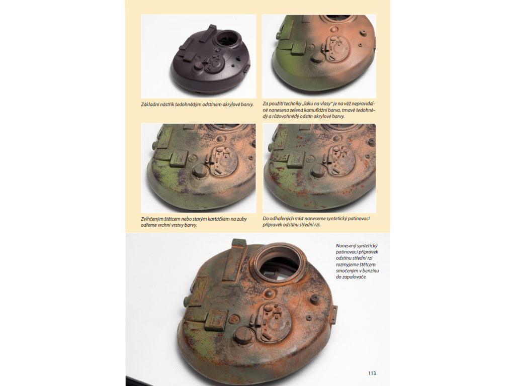 - Speciality: Patina gumových částí, vyleštěné pojezdové plochy, vybarvování dřeva a zbraní nebo efekty ohořelého povrchu.