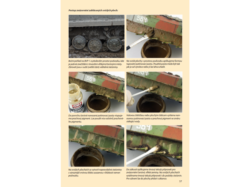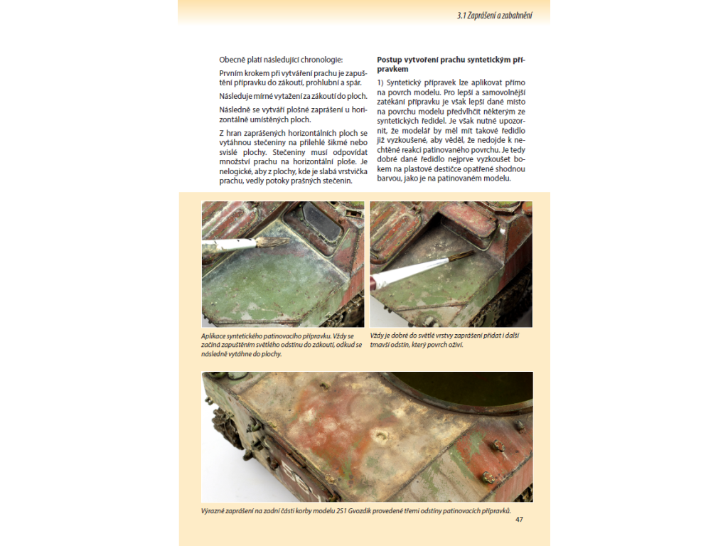 - Práce s barvami a filtry: Ovládněte techniku fading (zašlý povrch) pomocí olejových barev a naučte se tónovat povrch pomocí filtrů.