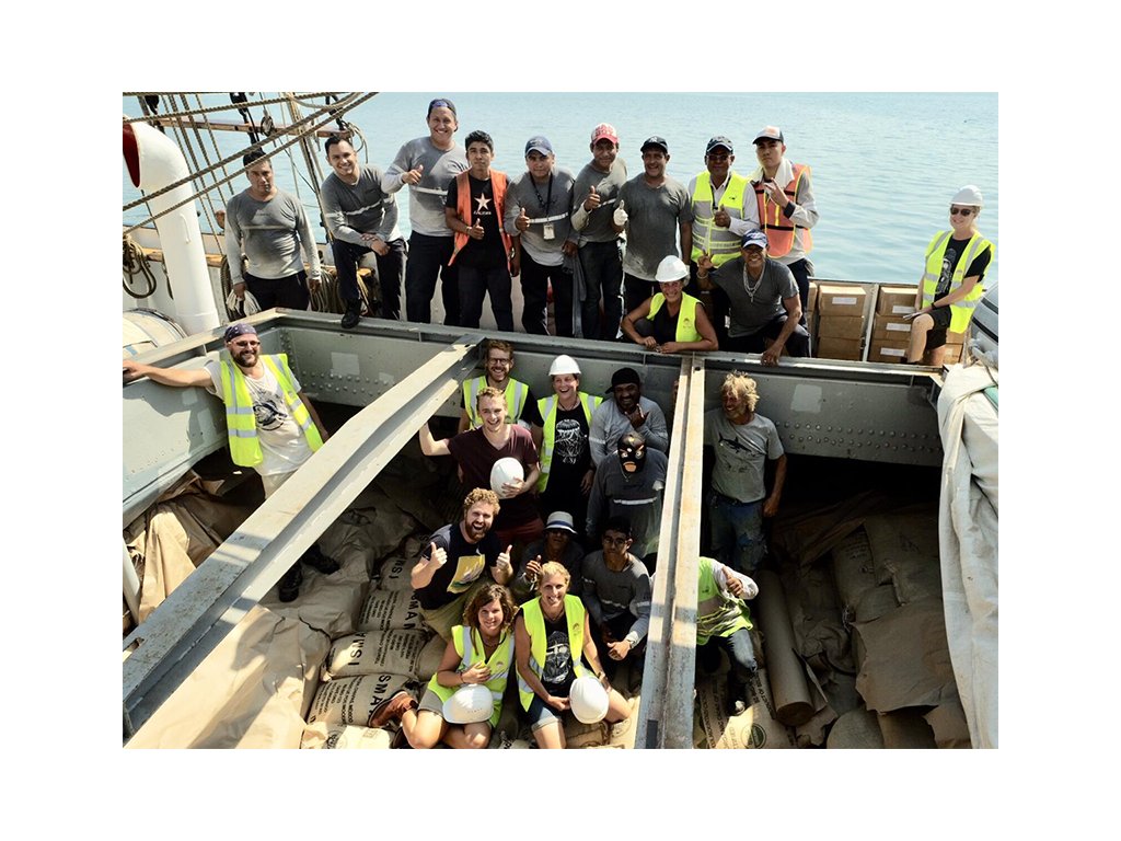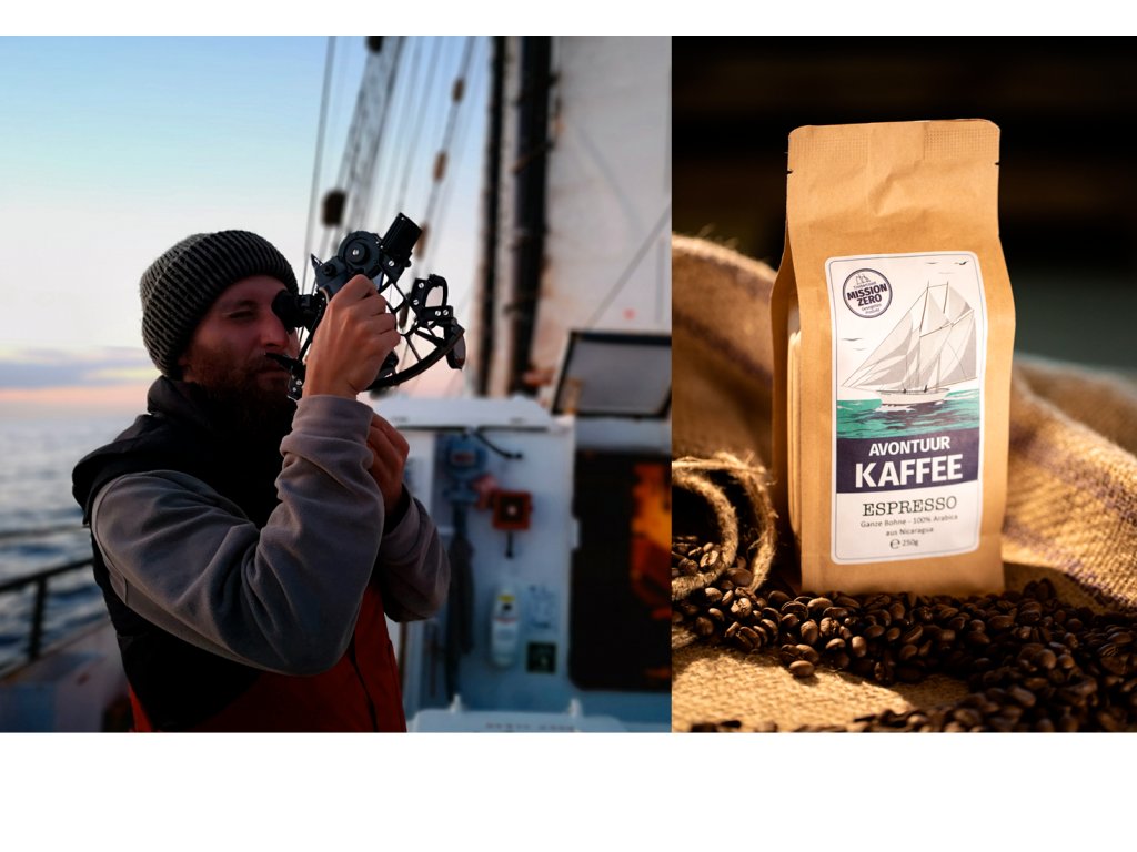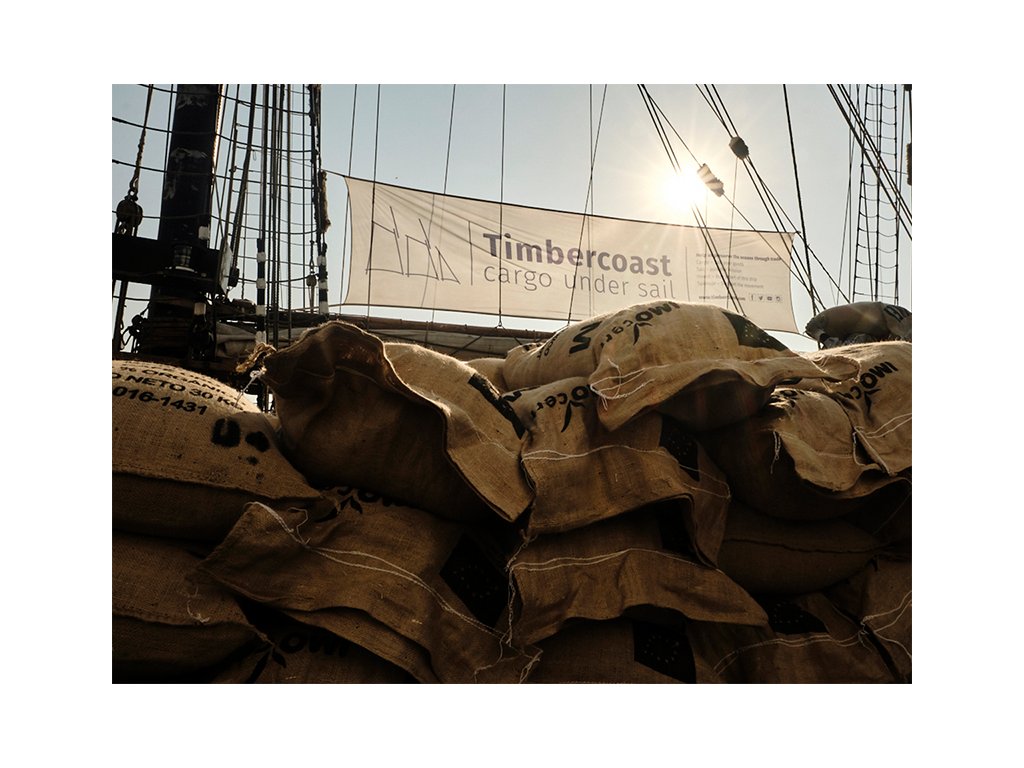 Káva, která přeplula Atlantik na tradiční plachetnici Avontuur z Mexika do Hamburku pouze za pomoci plachet.