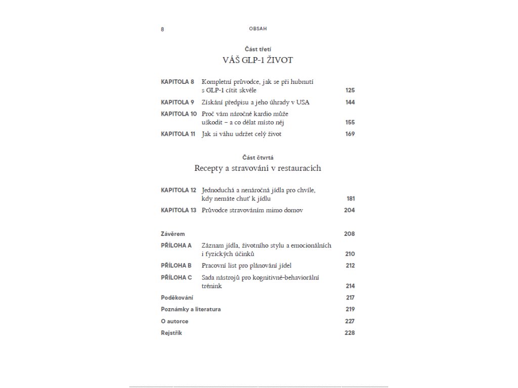 Čtenář získá srozumitelného průvodce, jak léky jako Ozempic fungují, co od nich čekat, jak se vyhnout nežádoucím účinkům a jak s nimi dosáhnout dlouhodobého úspěchu.